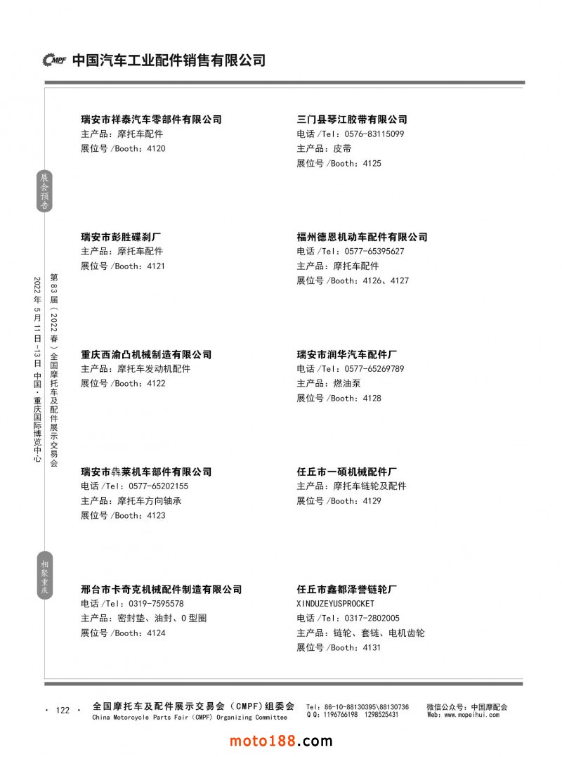 內(nèi)122 第82屆(2021秋)全國摩托車及配件展示交易會(huì)-廣州站參展企業(yè)信息