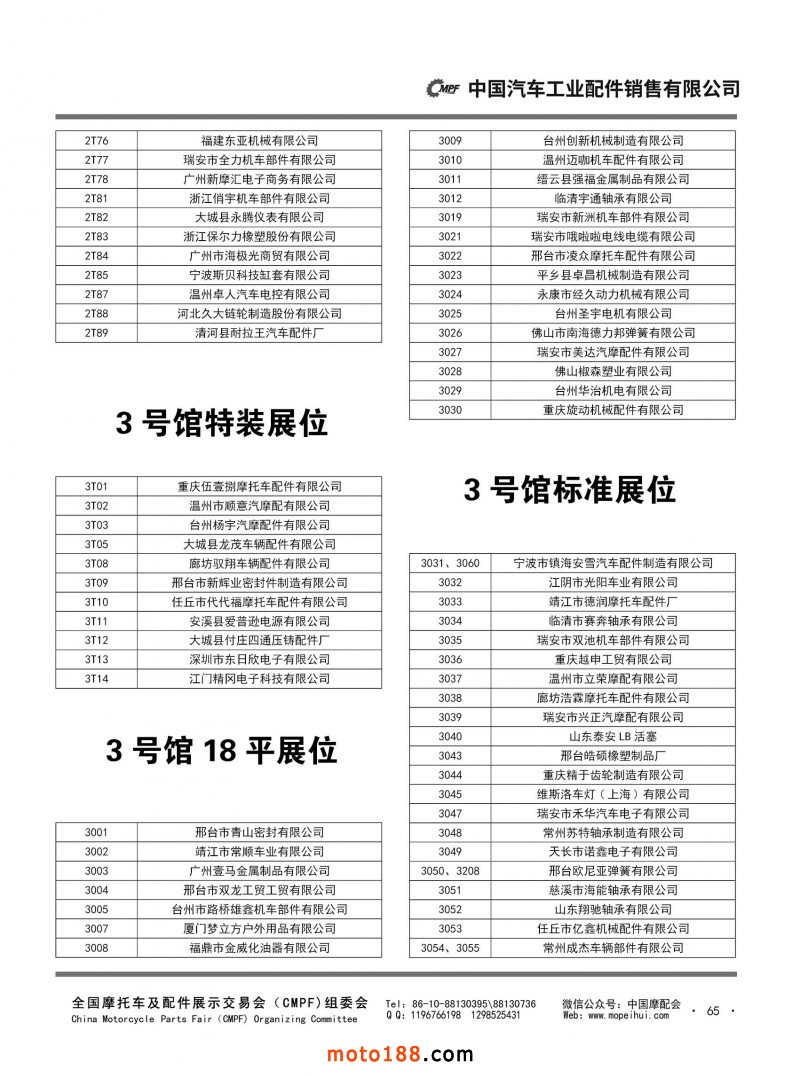 內65 第82屆(2021秋)全國摩托車及配件展示交易會-廣州站參展單位名錄
