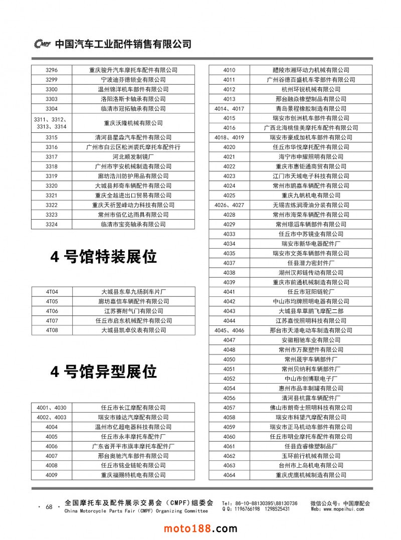 內68 第82屆(2021秋)全國摩托車及配件展示交易會-廣州站參展單位名錄
