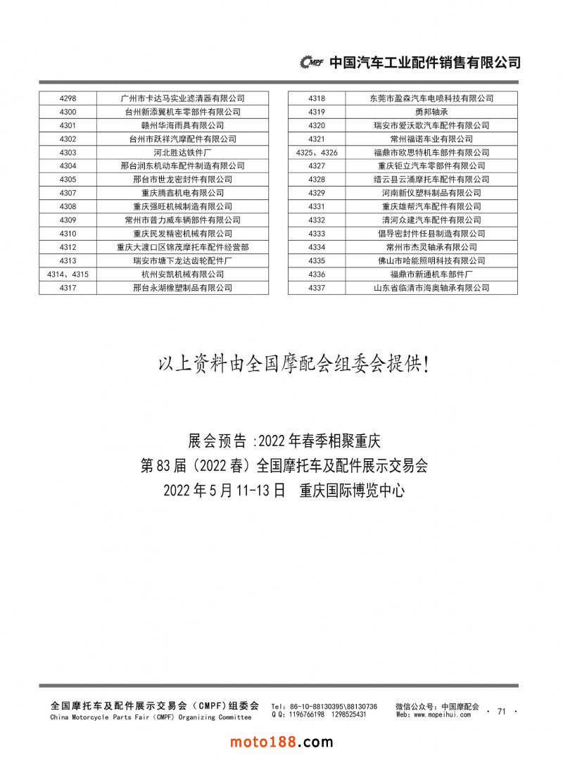 內(nèi)71 第82屆(2021秋)全國(guó)摩托車及配件展示交易會(huì)-廣州站參展單位名錄