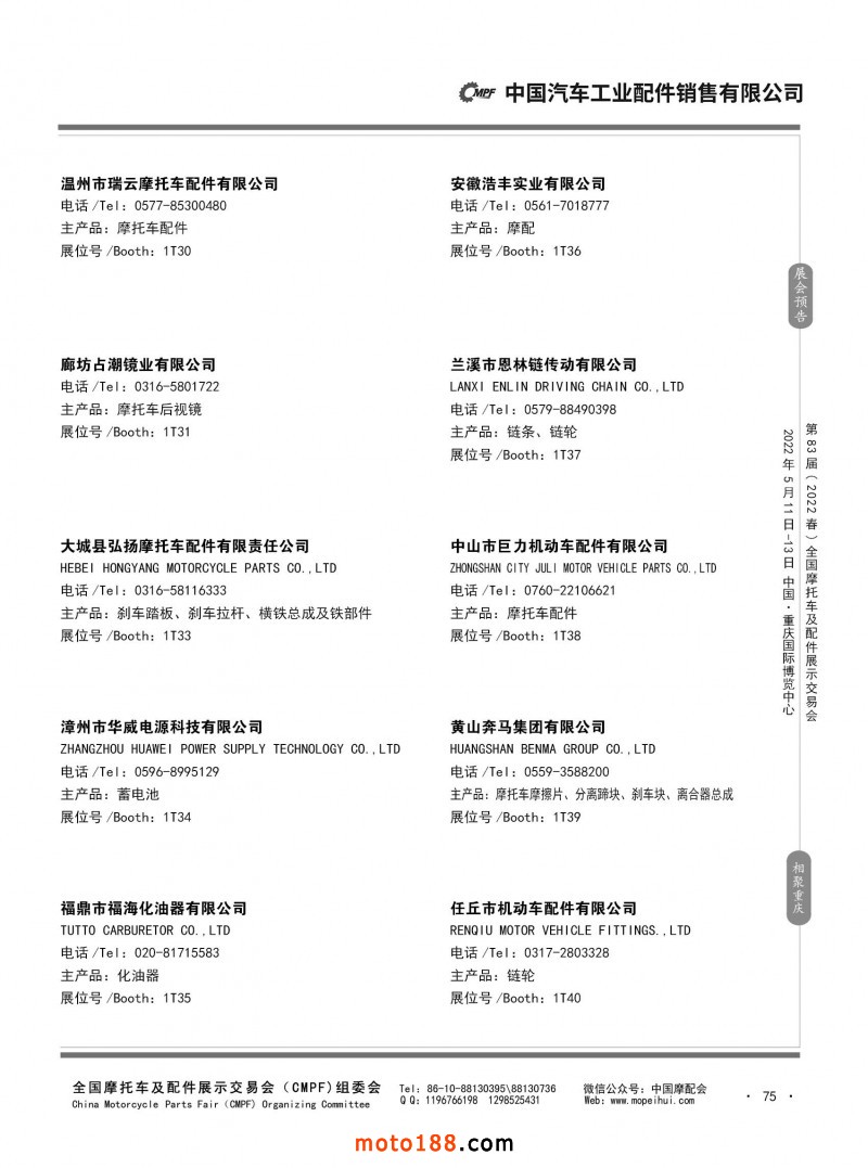 內(nèi)75 第82屆(2021秋)全國摩托車及配件展示交易會(huì)-廣州站參展企業(yè)信息