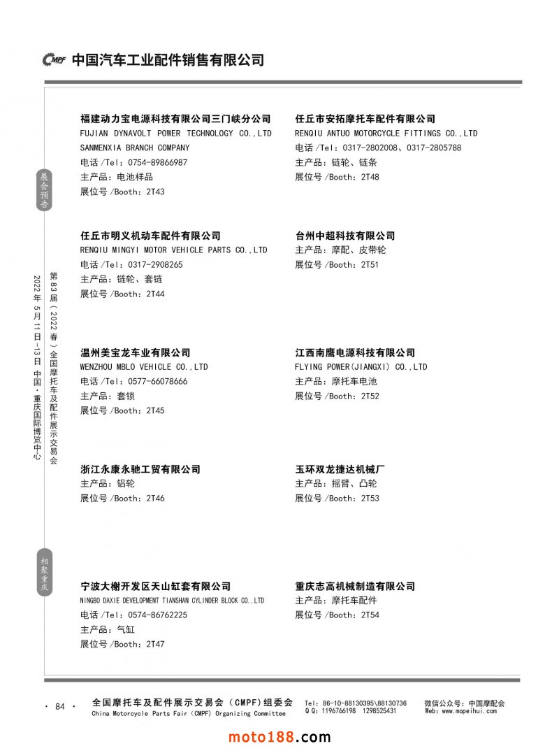 內84 第82屆(2021秋)全國摩托車及配件展示交易會-廣州站參展企業信息