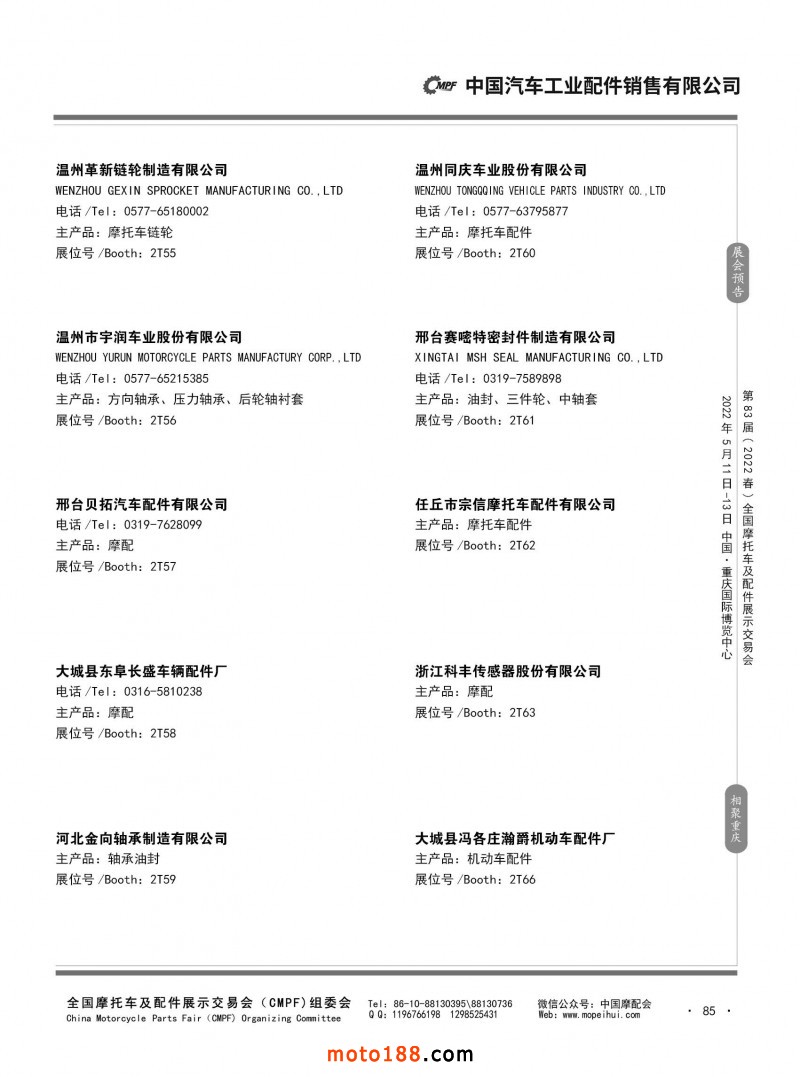 內(nèi)85 第82屆(2021秋)全國(guó)摩托車及配件展示交易會(huì)-廣州站參展企業(yè)信息