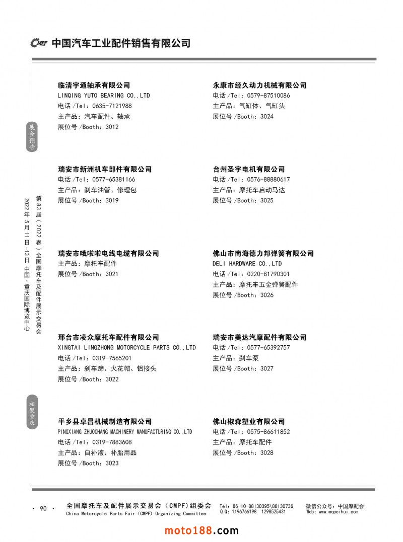 內90 第82屆(2021秋)全國摩托車及配件展示交易會-廣州站參展企業信息