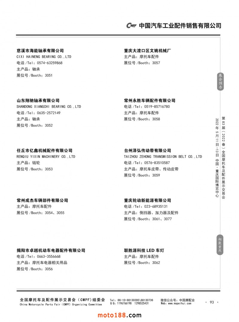 內(nèi)93 第82屆(2021秋)全國摩托車及配件展示交易會(huì)-廣州站參展企業(yè)信息