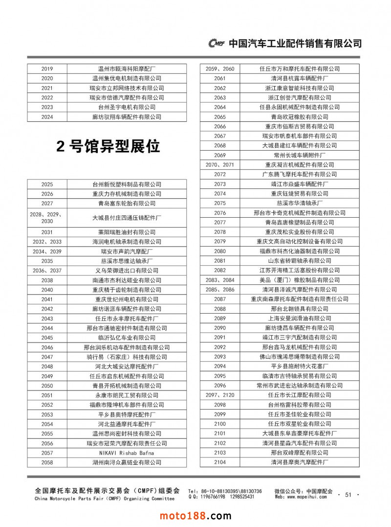 內(nèi)46-55 第87屆(2024春)全國摩托車及配件展示交易會-石家莊站參展單位名錄