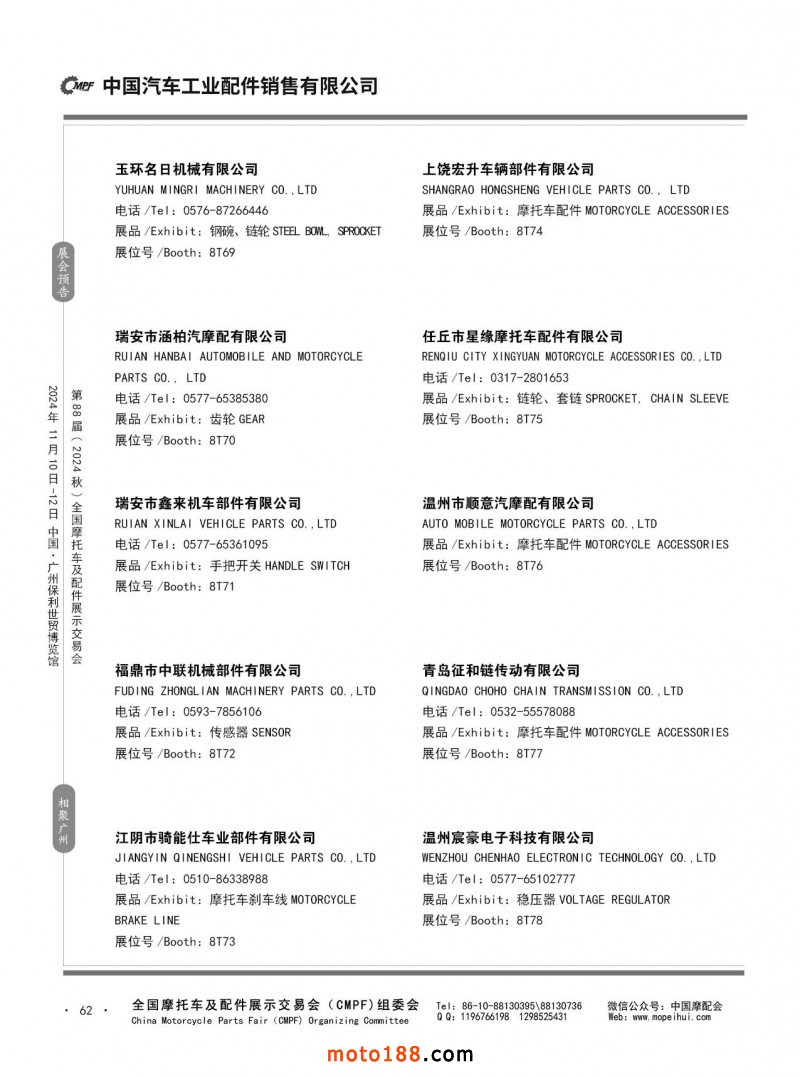 內56-132 第87屆(2024春)全國摩托車及配件展示交易會-石家莊站參展企業信息