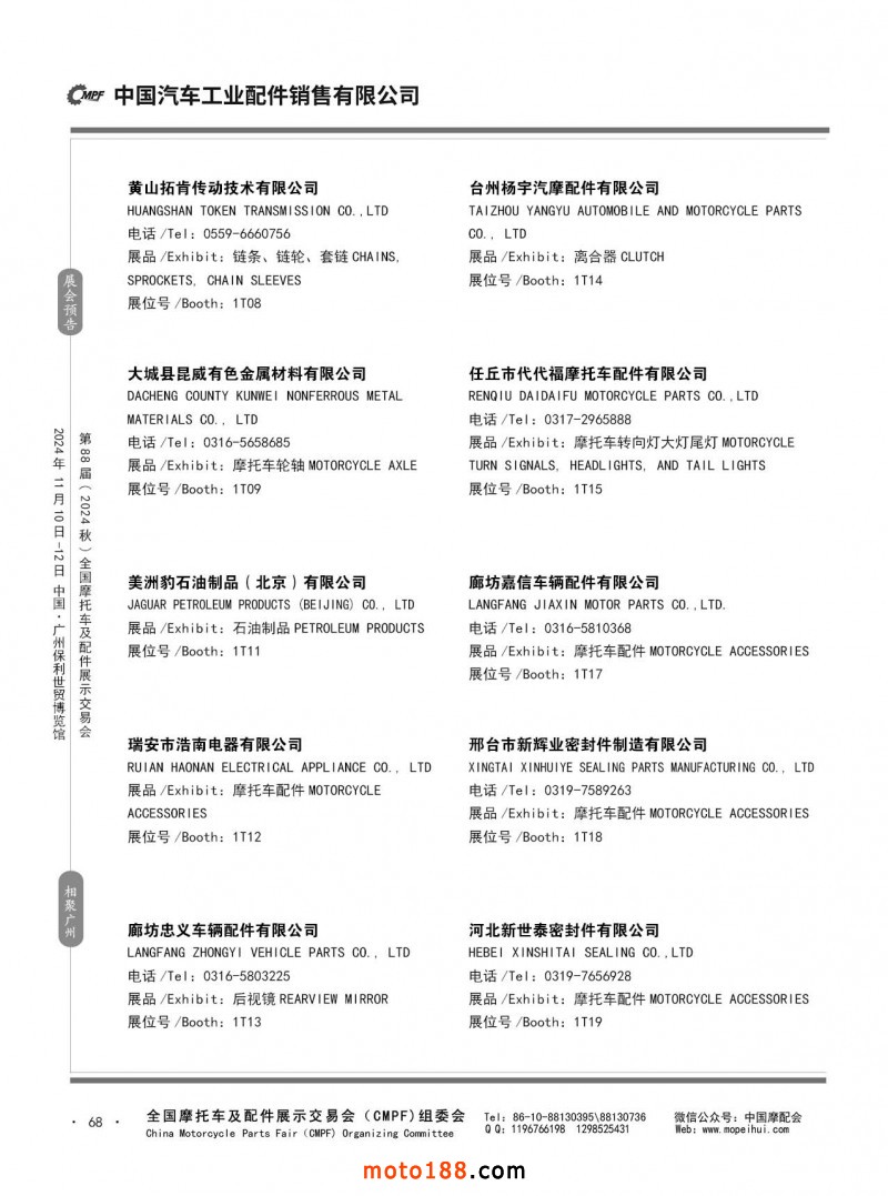 內56-132 第87屆(2024春)全國摩托車及配件展示交易會-石家莊站參展企業信息