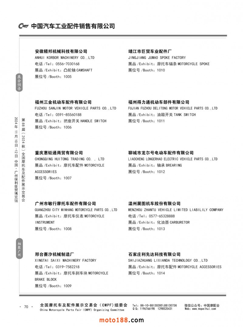 內(nèi)56-132 第87屆(2024春)全國摩托車及配件展示交易會-石家莊站參展企業(yè)信息