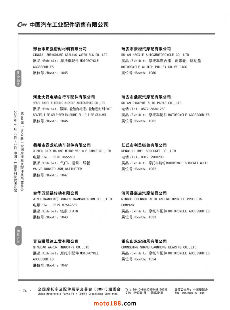 內56-132 第87屆(2024春)全國摩托車及配件展示交易會-石家莊站參展企業信息