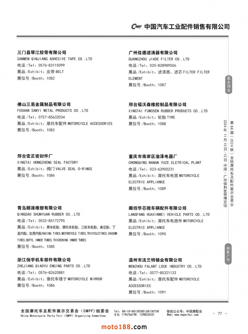 內(nèi)56-132 第87屆(2024春)全國摩托車及配件展示交易會-石家莊站參展企業(yè)信息