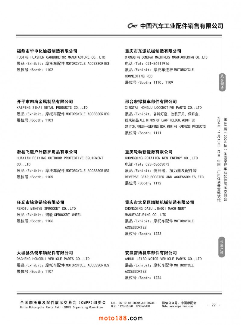 內56-132 第87屆(2024春)全國摩托車及配件展示交易會-石家莊站參展企業信息