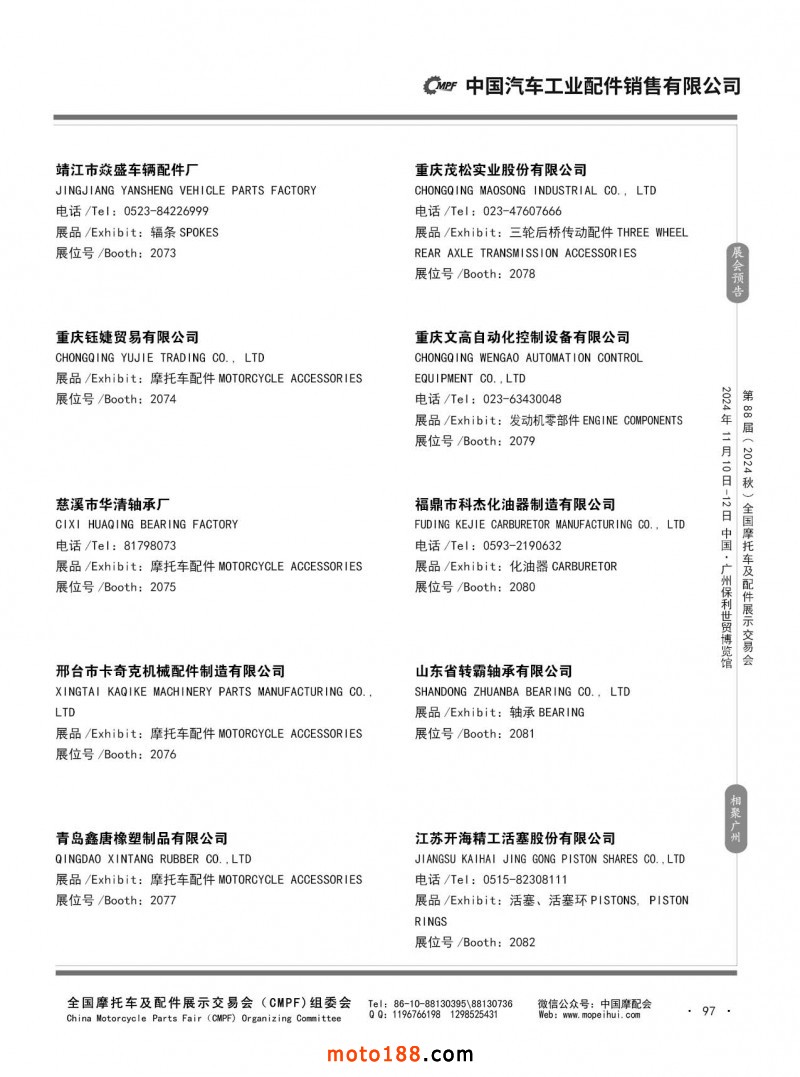 內(nèi)56-132 第87屆(2024春)全國摩托車及配件展示交易會-石家莊站參展企業(yè)信息