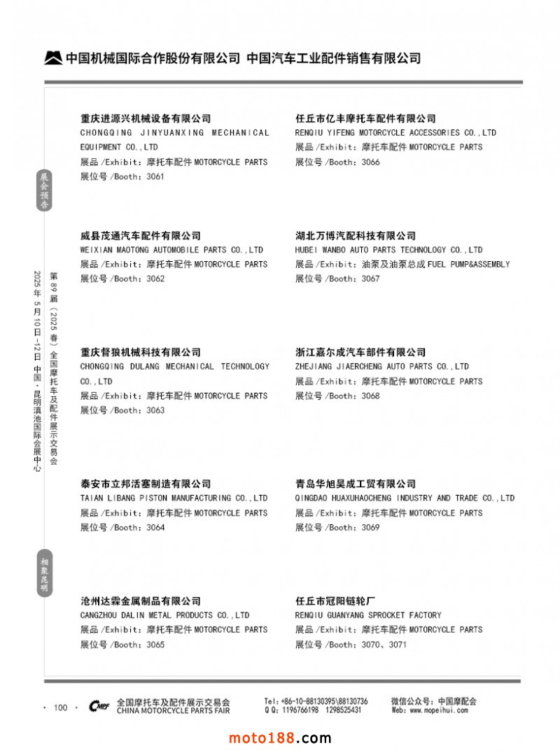 內69-188 第88屆(2024秋)全國摩托車及配件展示交易會-廣州站參展企業信息