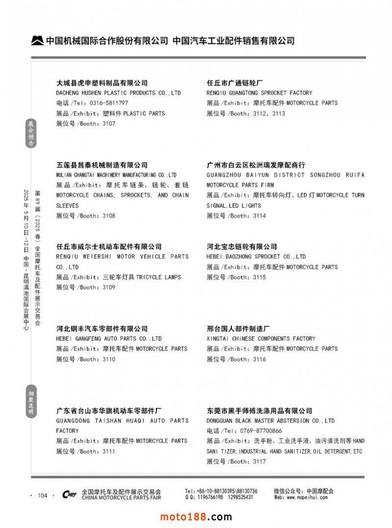 內69-188 第88屆(2024秋)全國摩托車及配件展示交易會-廣州站參展企業信息
