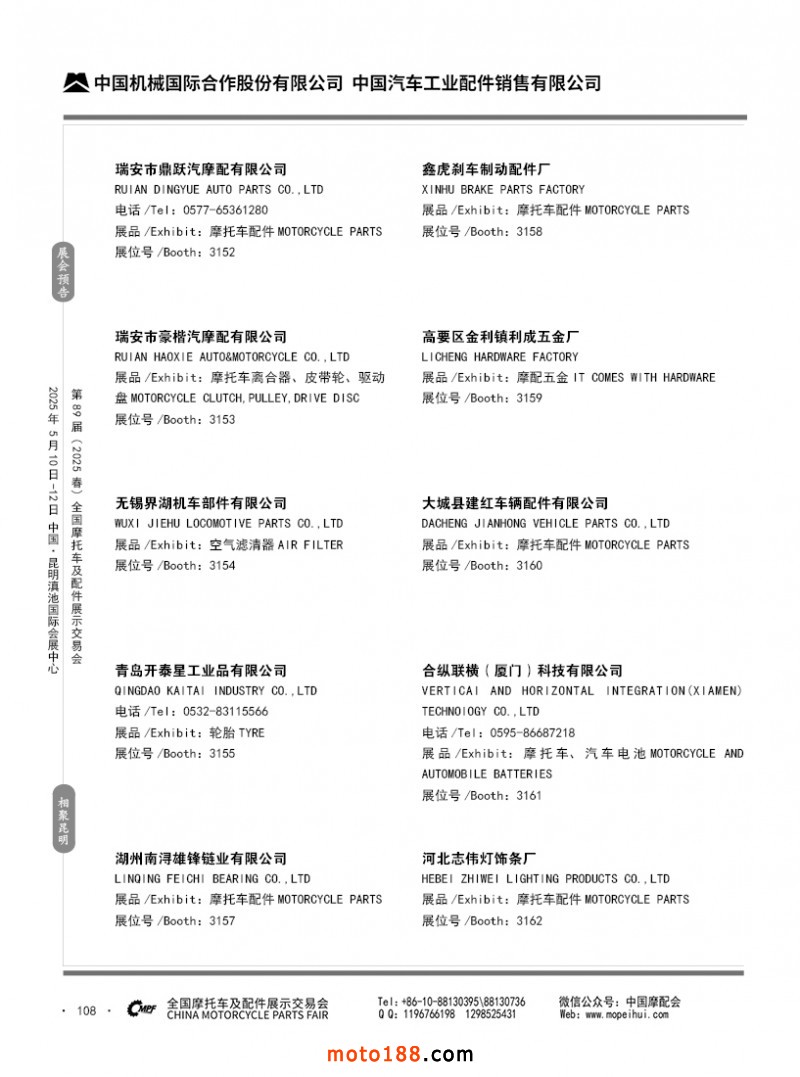 內69-188 第88屆(2024秋)全國摩托車及配件展示交易會-廣州站參展企業信息