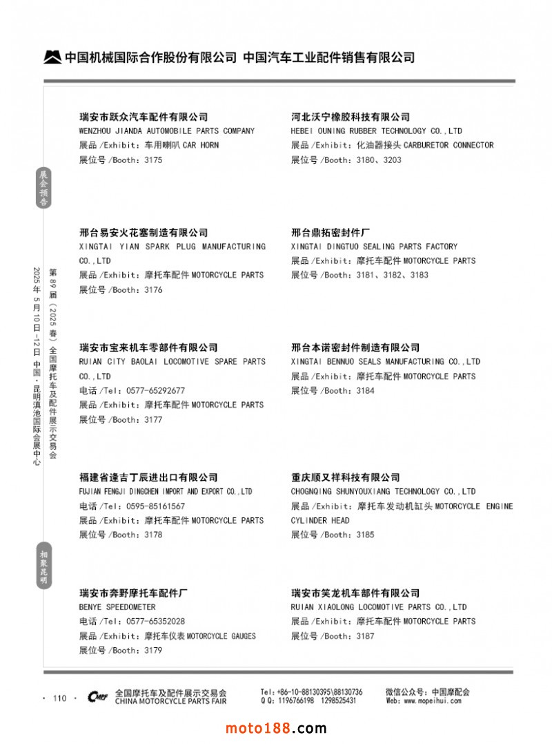 內69-188 第88屆(2024秋)全國摩托車及配件展示交易會-廣州站參展企業信息