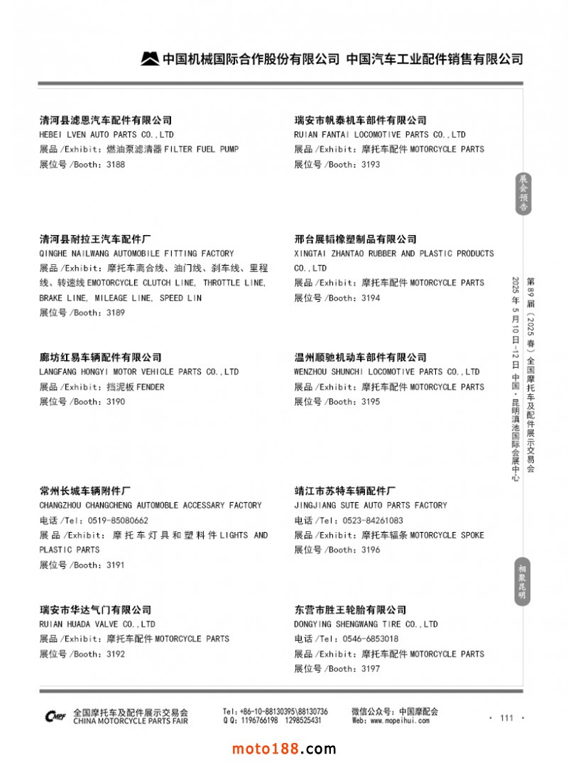 內69-188 第88屆(2024秋)全國摩托車及配件展示交易會-廣州站參展企業信息
