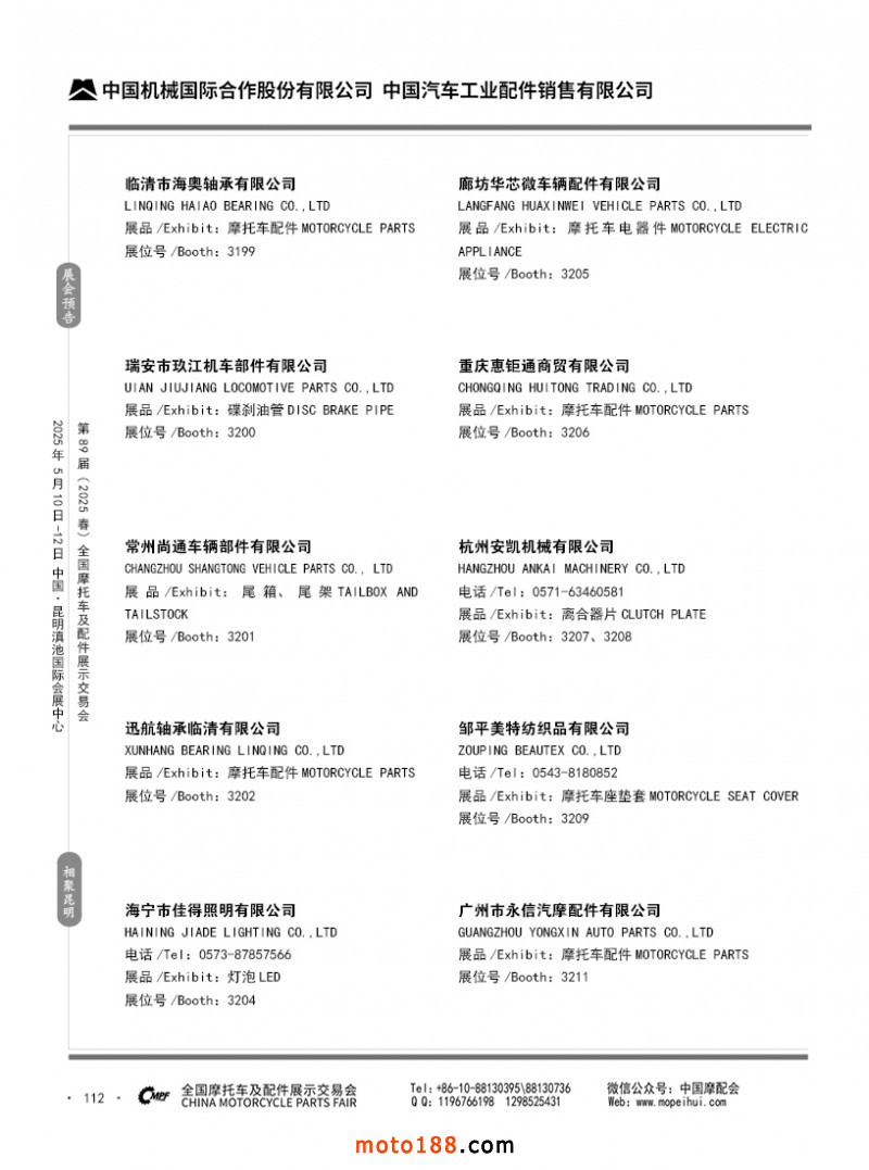內69-188 第88屆(2024秋)全國摩托車及配件展示交易會-廣州站參展企業信息