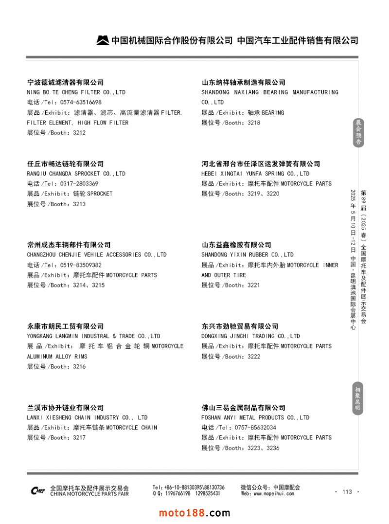 內69-188 第88屆(2024秋)全國摩托車及配件展示交易會-廣州站參展企業信息