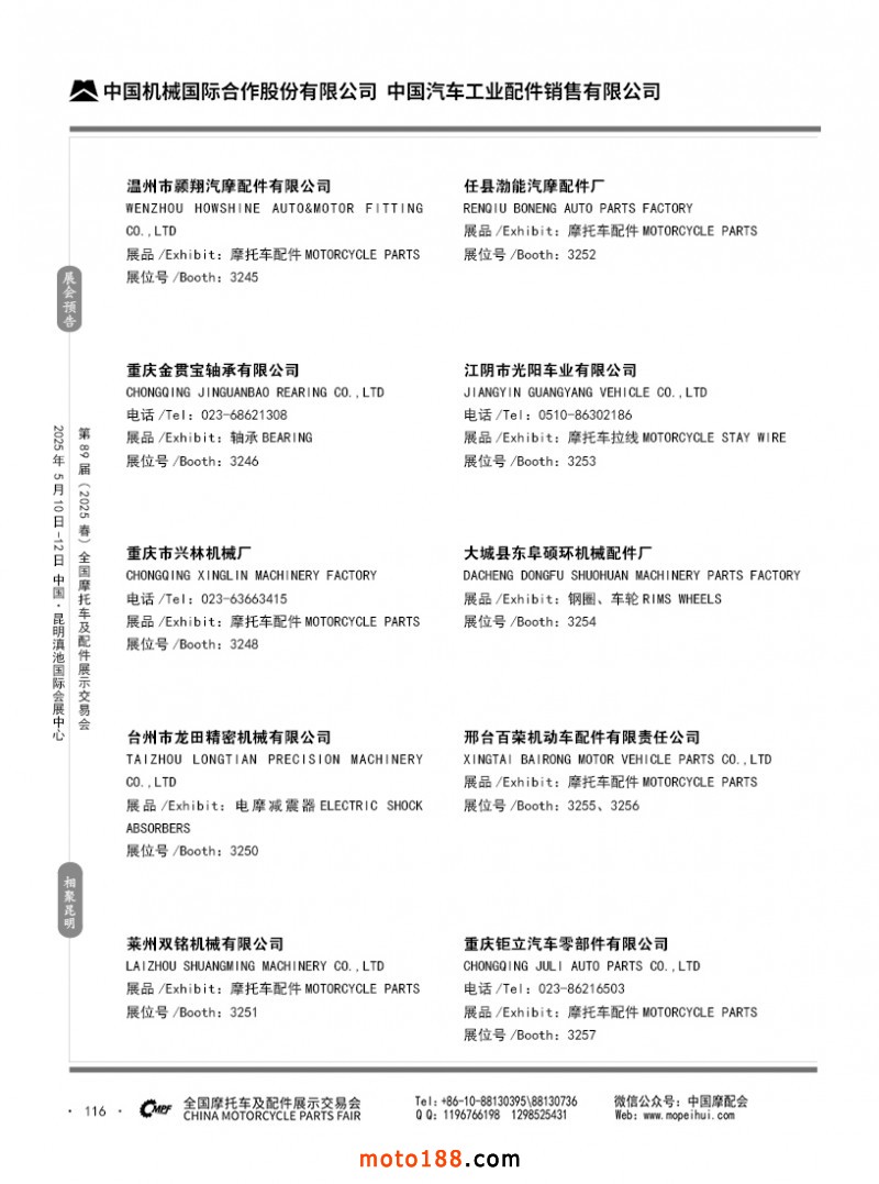 內69-188 第88屆(2024秋)全國摩托車及配件展示交易會-廣州站參展企業信息