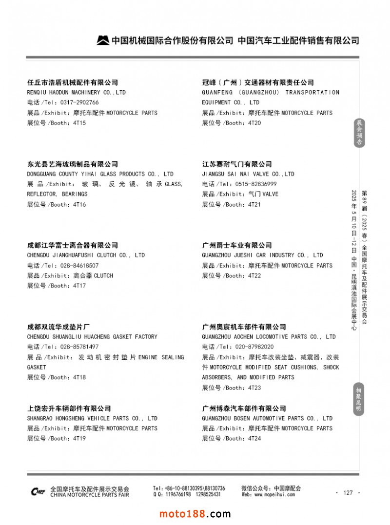 內69-188 第88屆(2024秋)全國摩托車及配件展示交易會-廣州站參展企業信息