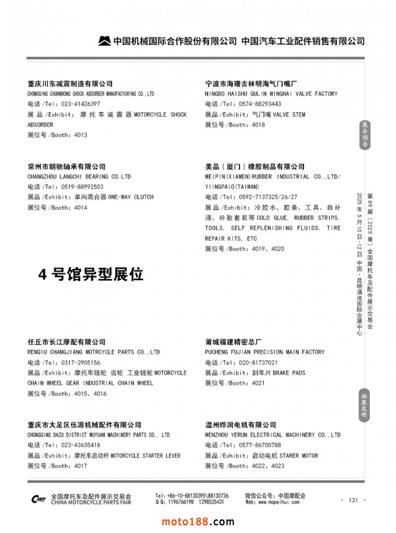 內69-188 第88屆(2024秋)全國摩托車及配件展示交易會-廣州站參展企業(yè)信息