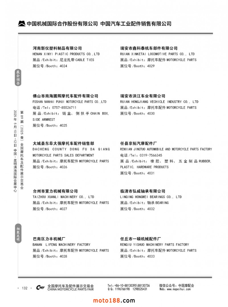 內69-188 第88屆(2024秋)全國摩托車及配件展示交易會-廣州站參展企業信息
