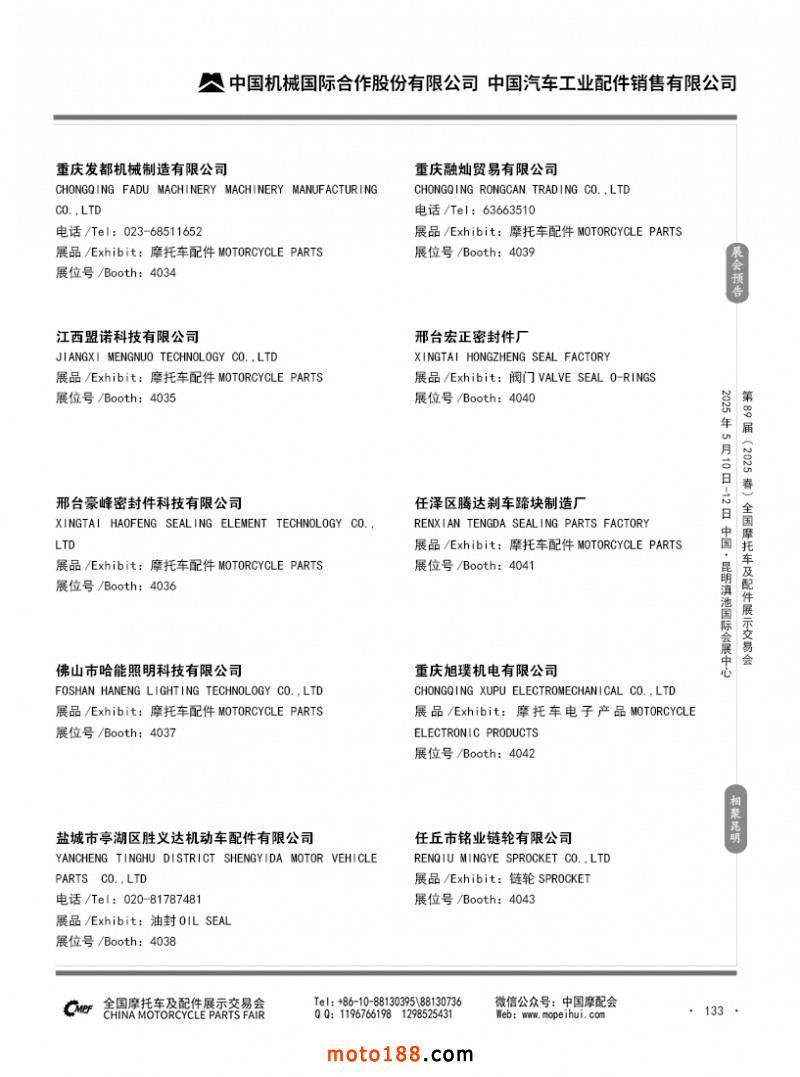 內69-188 第88屆(2024秋)全國摩托車及配件展示交易會-廣州站參展企業信息