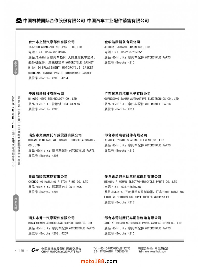 內(nèi)69-188 第88屆(2024秋)全國摩托車及配件展示交易會-廣州站參展企業(yè)信息
