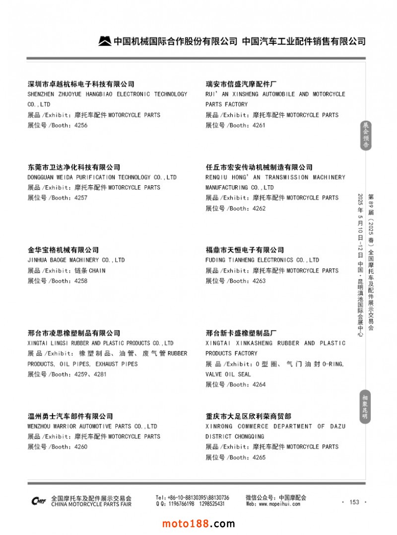 內(nèi)69-188 第88屆(2024秋)全國摩托車及配件展示交易會-廣州站參展企業(yè)信息