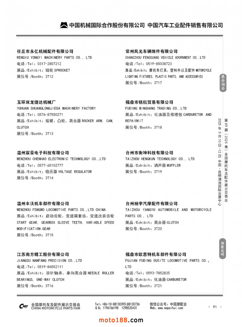 內69-188 第88屆(2024秋)全國摩托車及配件展示交易會-廣州站參展企業信息