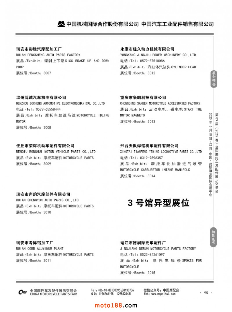 內69-188 第88屆(2024秋)全國摩托車及配件展示交易會-廣州站參展企業信息