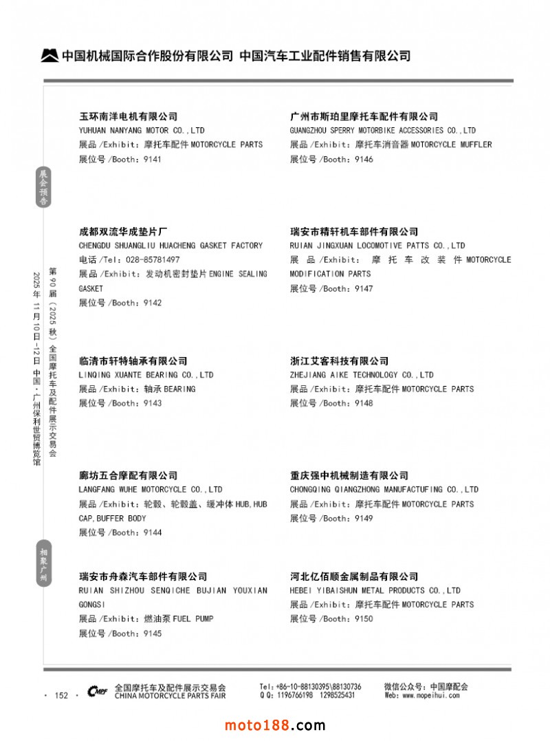 內(nèi)152 第89屆(2025春)全國(guó)摩托車及配件展示交易會(huì)-昆明站參展企業(yè)信息