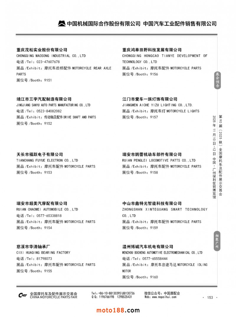 內153 第89屆(2025春)全國摩托車及配件展示交易會-昆明站參展企業信息