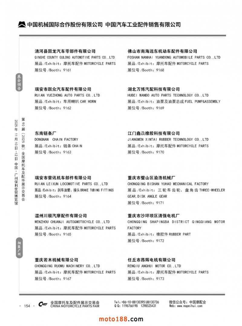 內154 第89屆(2025春)全國摩托車及配件展示交易會-昆明站參展企業信息
