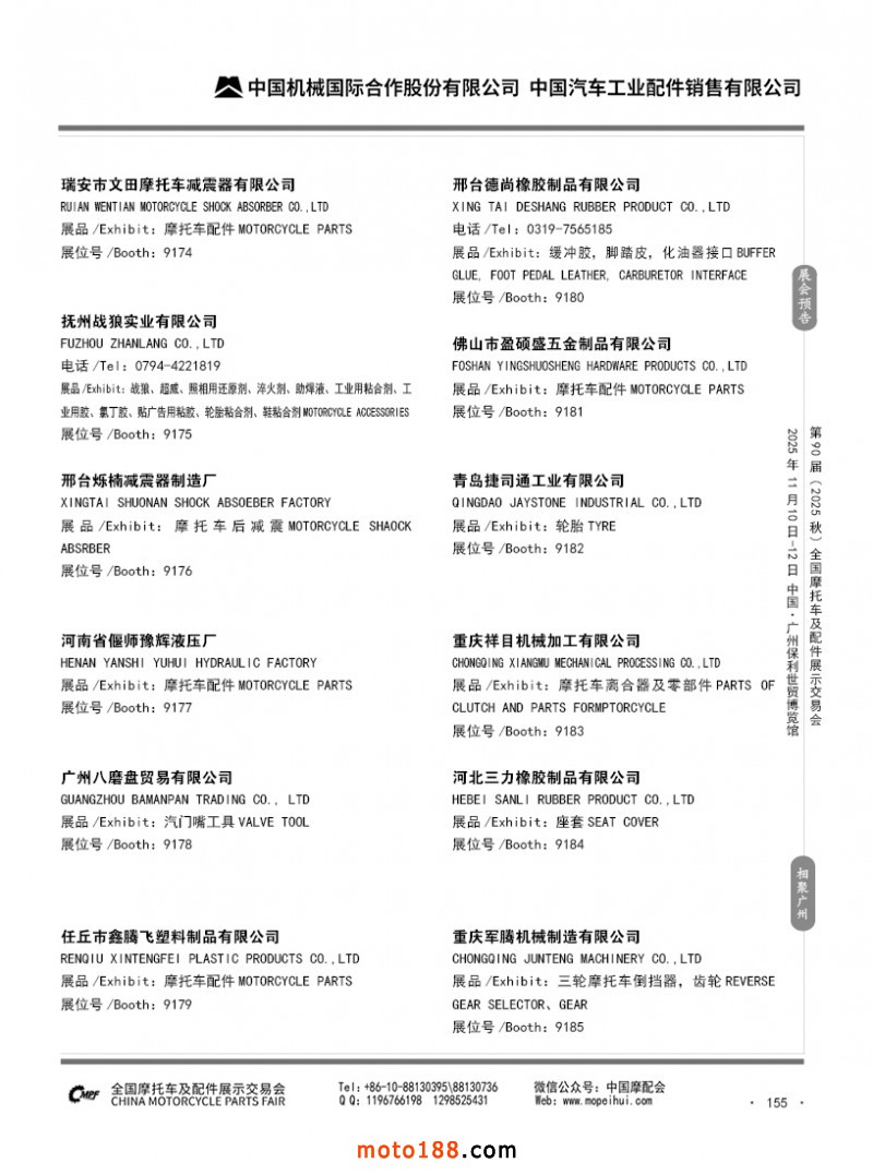 內155 第89屆(2025春)全國摩托車及配件展示交易會-昆明站參展企業信息