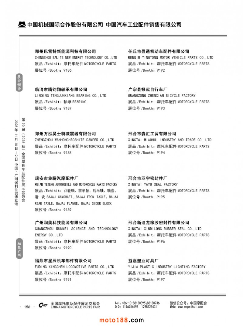內156 第89屆(2025春)全國摩托車及配件展示交易會-昆明站參展企業信息