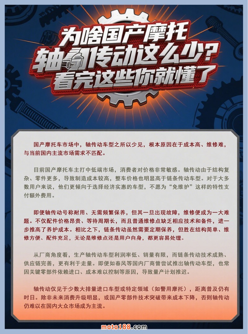 內(nèi)14 為啥國(guó)產(chǎn)摩托軸傳動(dòng)這么少?