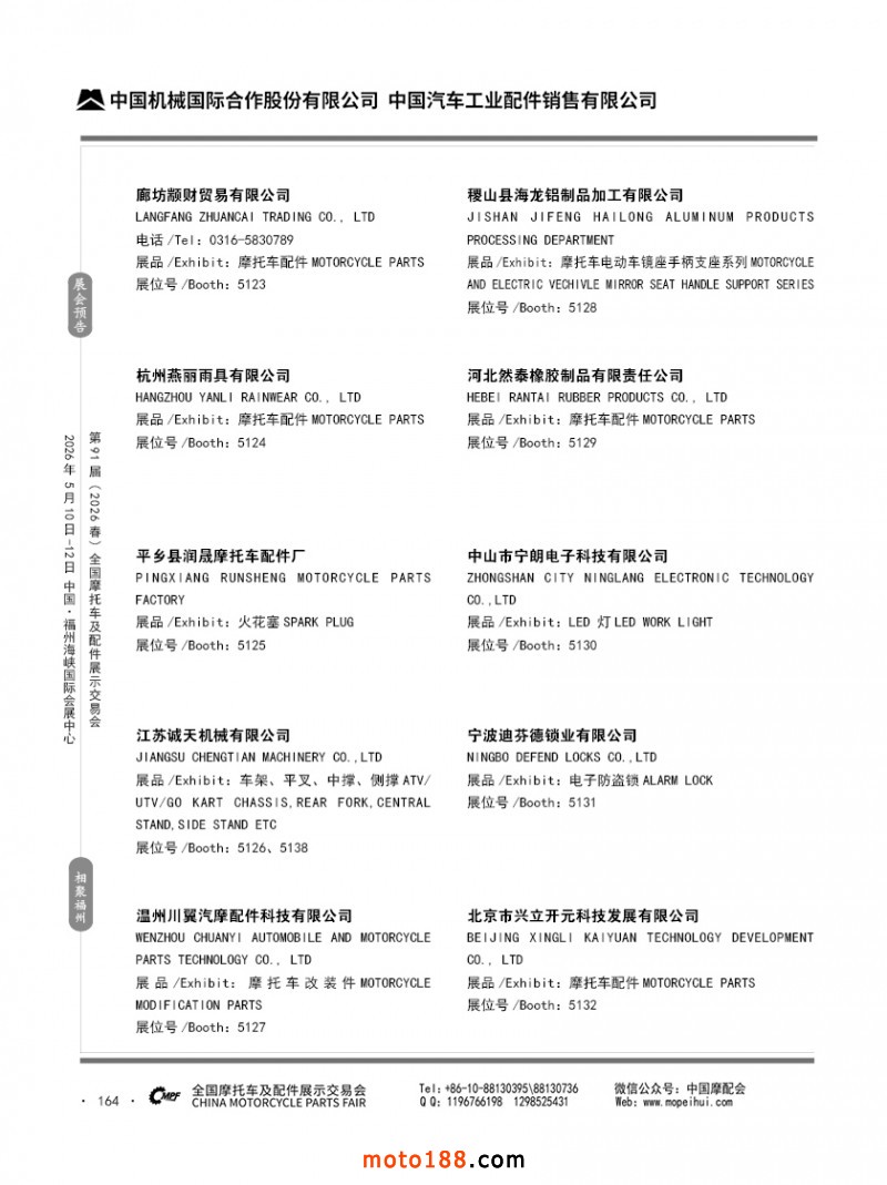內(nèi)164 第90屆(2025秋)全國摩托車及配件展示交易會(huì)-廣州站參展企業(yè)信息
