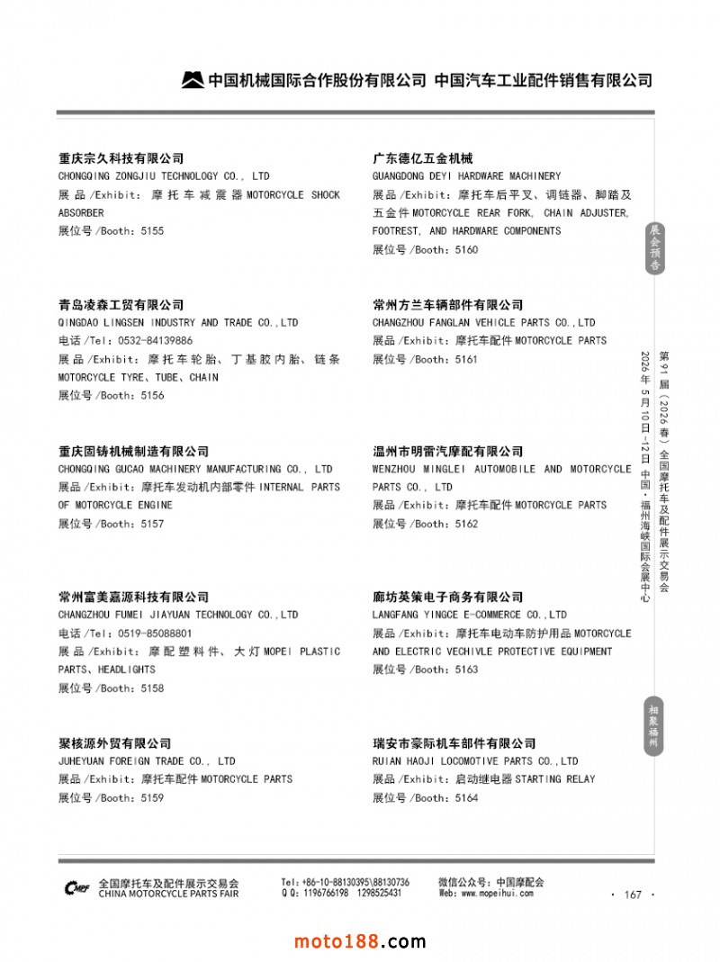 內167 第90屆(2025秋)全國摩托車及配件展示交易會-廣州站參展企業信息