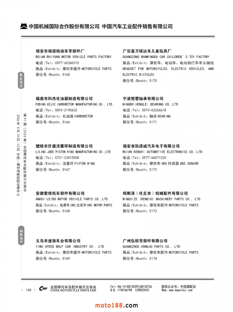 內(nèi)168 第90屆(2025秋)全國(guó)摩托車及配件展示交易會(huì)-廣州站參展企業(yè)信息