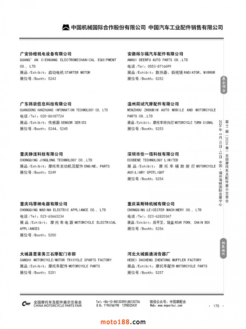 內175 第90屆(2025秋)全國摩托車及配件展示交易會-廣州站參展企業信息
