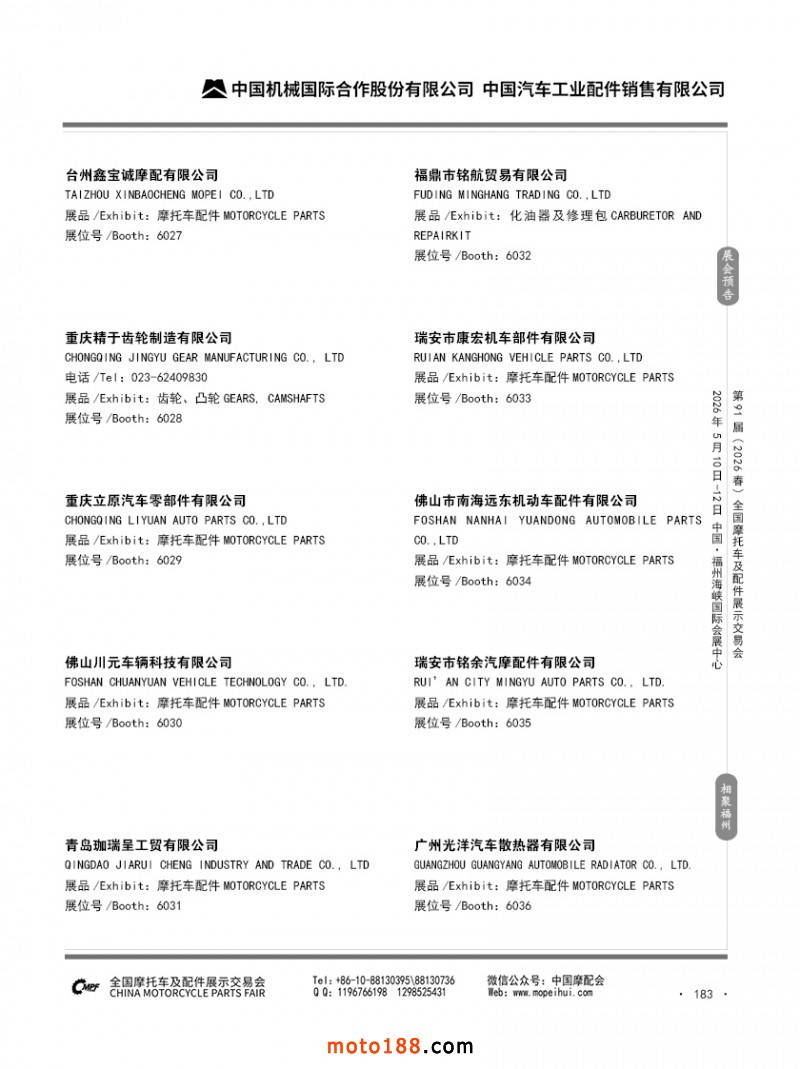 內183 第90屆(2025秋)全國摩托車及配件展示交易會-廣州站參展企業信息