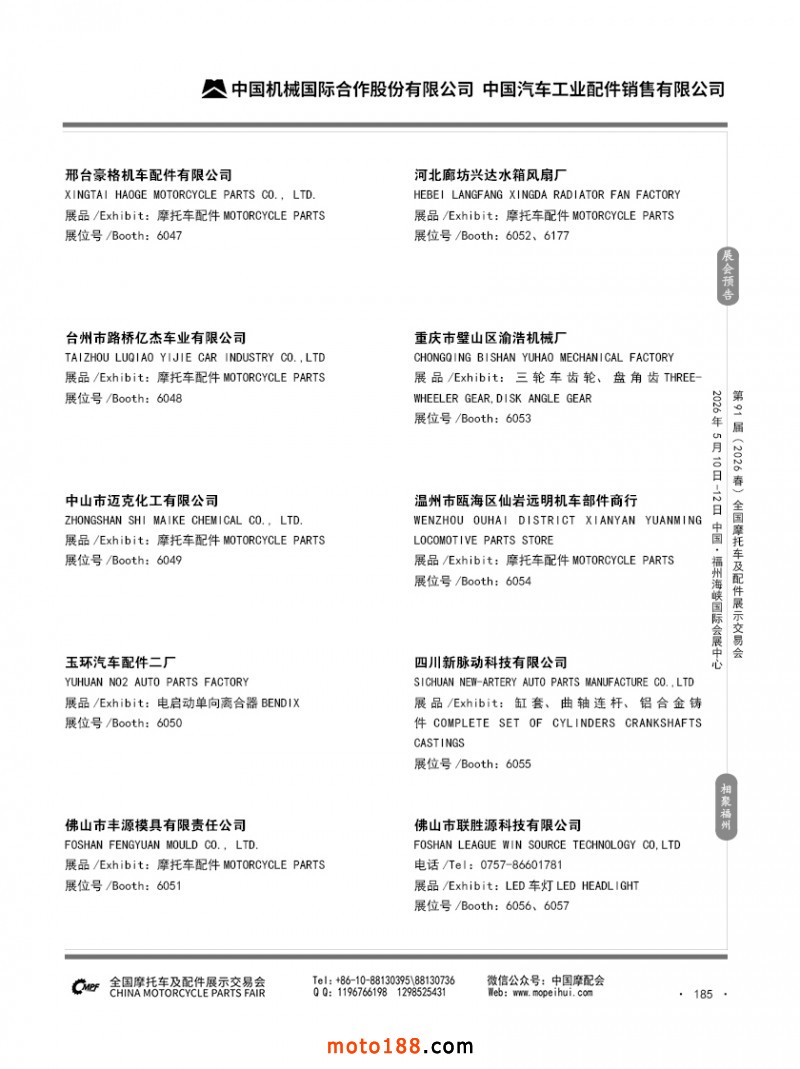 內185 第90屆(2025秋)全國摩托車及配件展示交易會-廣州站參展企業信息