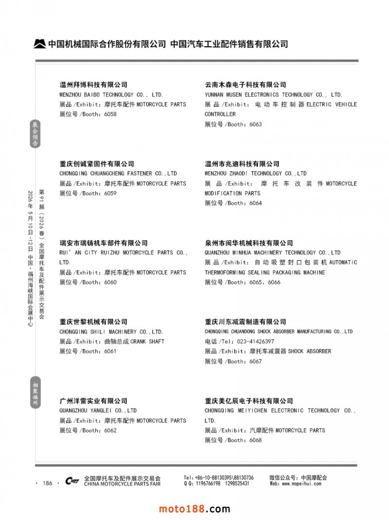 內186 第90屆(2025秋)全國摩托車及配件展示交易會-廣州站參展企業信息