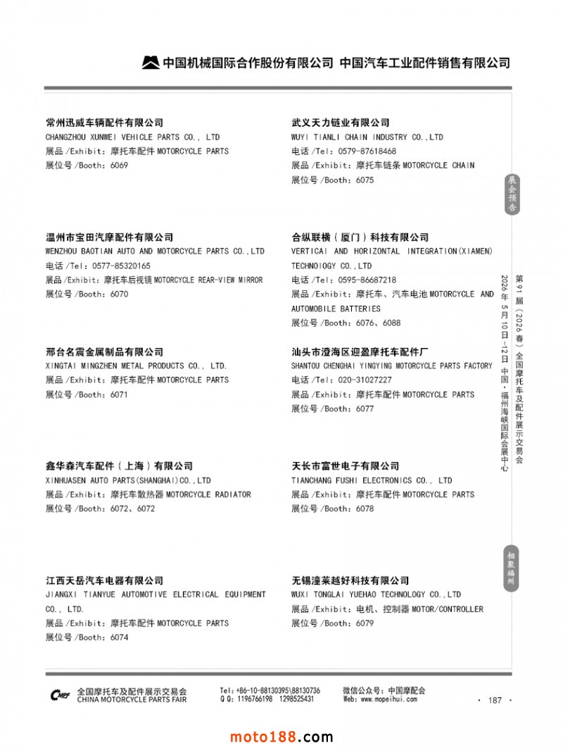 內187 第90屆(2025秋)全國摩托車及配件展示交易會-廣州站參展企業信息