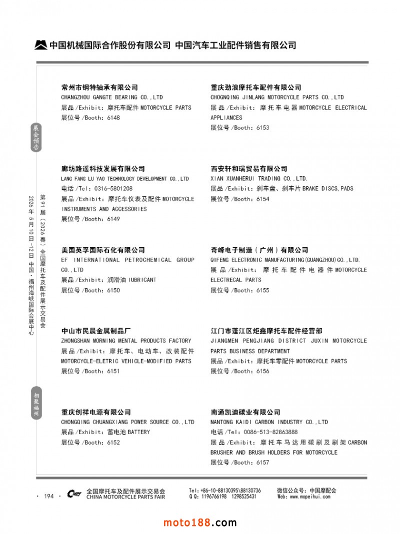 內194 第90屆(2025秋)全國摩托車及配件展示交易會-廣州站參展企業信息