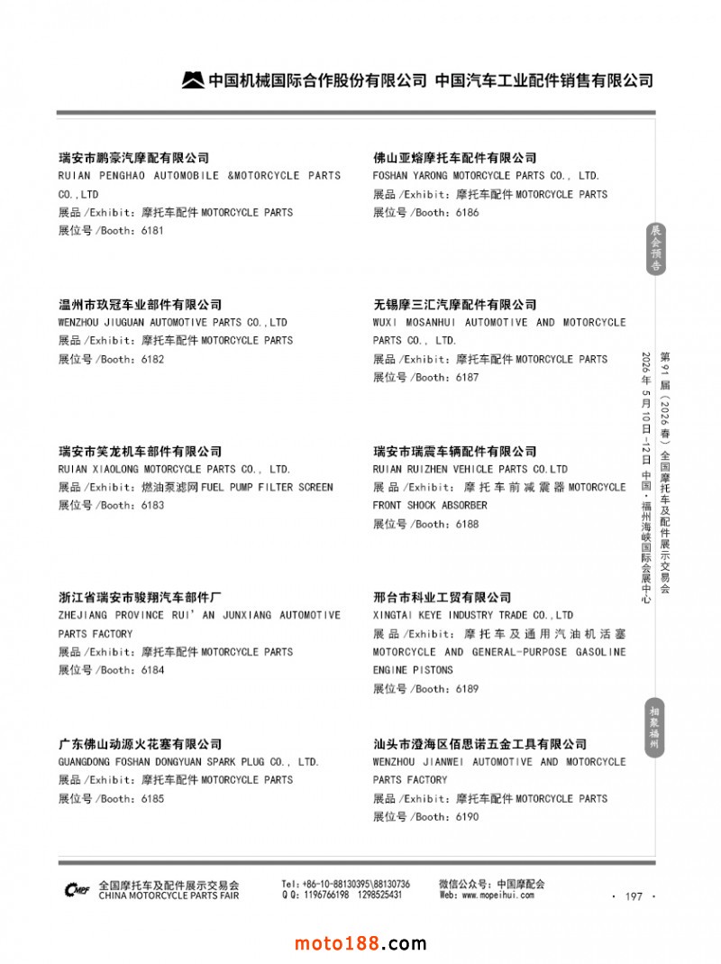 內197 第90屆(2025秋)全國摩托車及配件展示交易會-廣州站參展企業信息