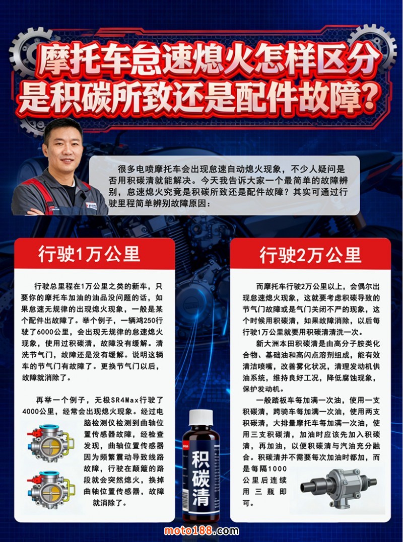 內20 摩托車怠速熄火怎樣區分是積碳所致還是配件故障?